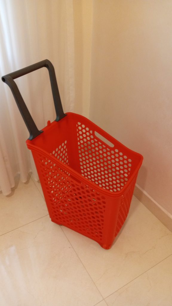 سلة تسوق بعجلات ارضية السلة عريضة سعتها ٦٠ ليتر