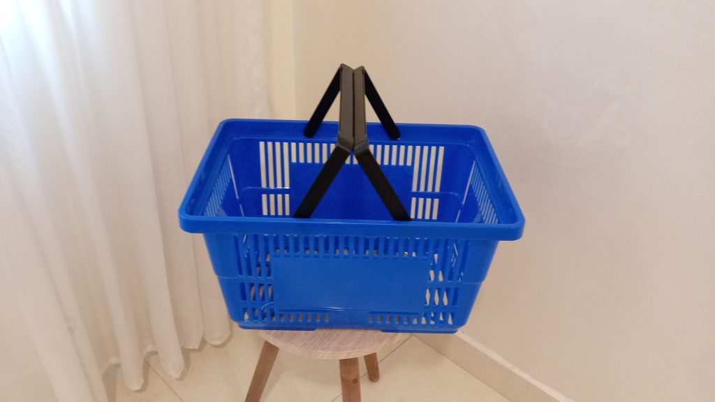 سلة تسوق يدوية كبيرة لون ازرق مع ايدي